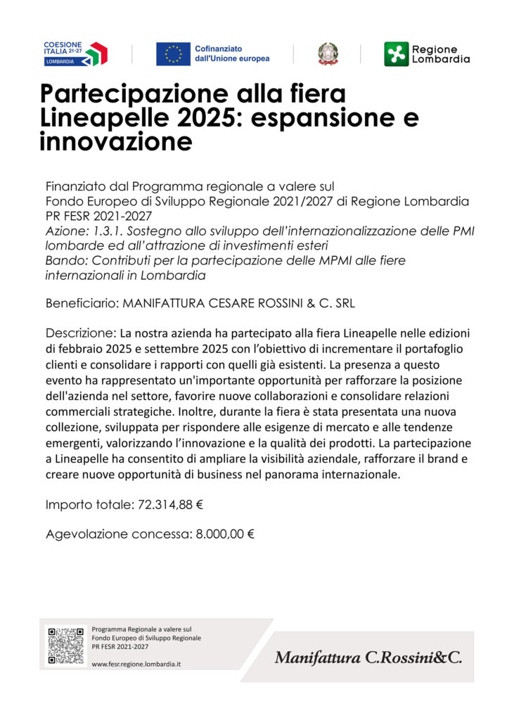 È per noi un’occasione per presentare le nostre novità, incontrare clienti e partner, e condividere la qualità del Made in Italy firmato Manifattura Rossini.